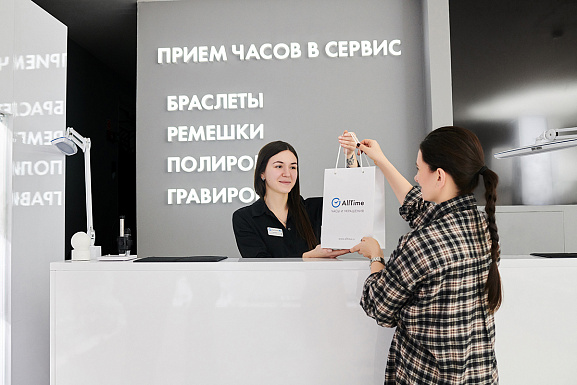 Компания AllTime является крупнейшим импортёром и продавцом часов на территории РФ и за свою четвертьвековую историю заслужила репутацию организации с высокими стандартами обслуживания. Наш собственный сервис является одним из самых оснащённых сервисных центров в России и представлен в Москве и других крупных городах. Информация о сервисных центрах представлена в гарантийном талоне и на странице «Cписок сервисных центров».