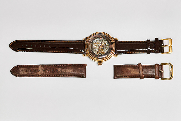 • естественный износ элементов в процессе эксплуатации: истирание поверхности, в том числе покрытия, корпуса, кнопок, головок часов, ремешка;