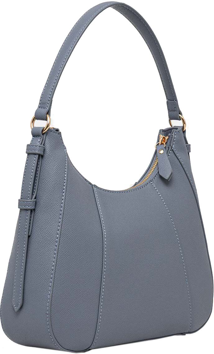 Сумка из полиуретана с эффектом зернистой кожи. Основное отделение закрывается на молнию, внутри расположен карман на молнии. Снаружи на лицевой стороне дополнительный открытый карман.