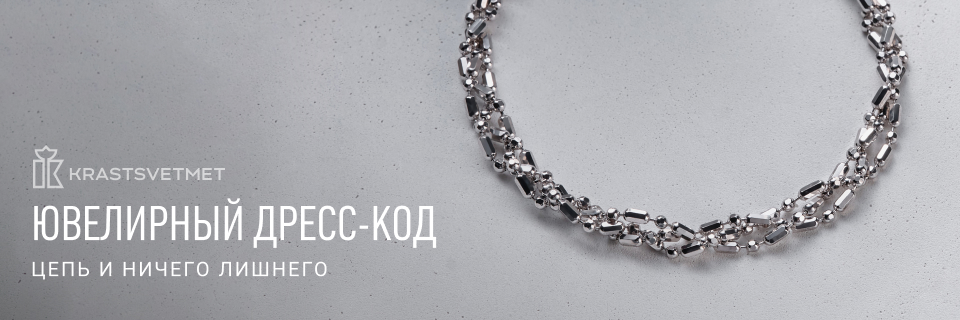 Krastsvetmet — один из крупнейших в мире производителей драгоценных металлов. Флагманский ювелирный продукт компании — цепи из золота, серебра и платины. Производство полного цикла — от чистого металла до готового изделия — точные технологии и мировые стандарты качества. В коллекции Krastsvetmet более 2000 украшений из 5 цветов золота, высококаратной платины, серебра в 4 покрытиях — белого и черного родия, красного и желтого золочения.
