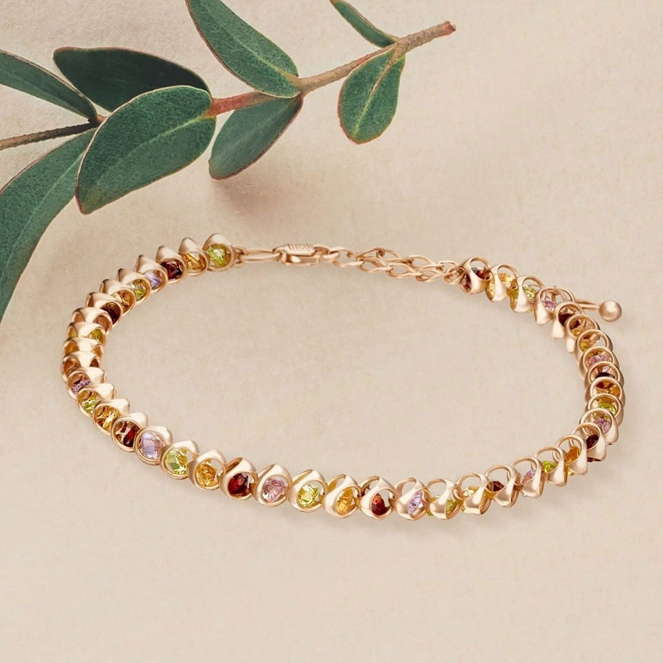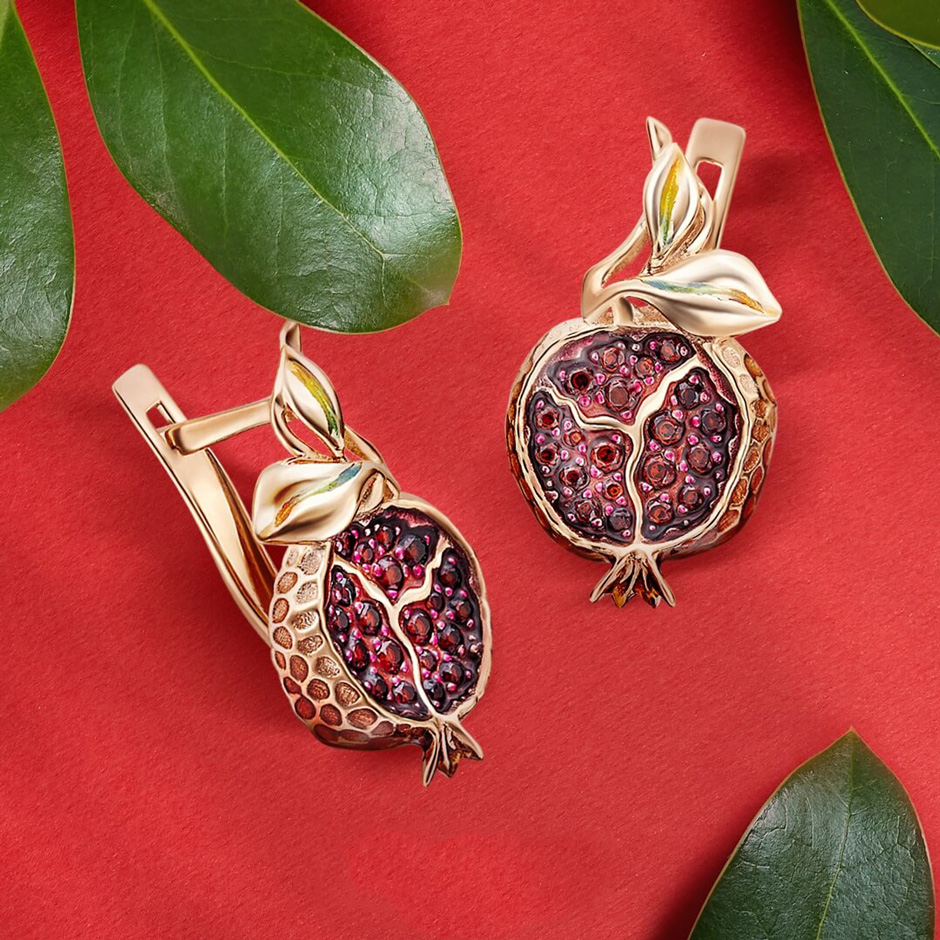 Красное золото 585 пробы в в коричневых и золотистых цветах.