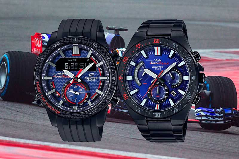 А вот главным амбассадором другого семейства часов – Casio Edifice, рожденного в 2006 году, – является не конкретный человек, а целая команда: Scuderia Toro Rosso, одна из «конюшен» Формулы-1. В свою очередь, бренд Edifice – официальный хронометрист этой команды (с 2016-го). И не случайно, ведь все Edifice представляют собой хронографы в высшей степени спортивного стиля. «Торо-россовские» версии выполнены в красно-бело-синей гамме, а множество других моделей – в самых разнообразных цветах. Как и положено спортивным часам, они очень насыщены функциями: хронограф, мировое время, будильник, календарь, таймер обратного отсчета, индикаторы состояния, синхронизация со смартфоном, функция его поиска, подсветка (с режимом особой яркости), солнечная батарея, радиоконтроль. Разумеется, и тахиметрическая шкала.