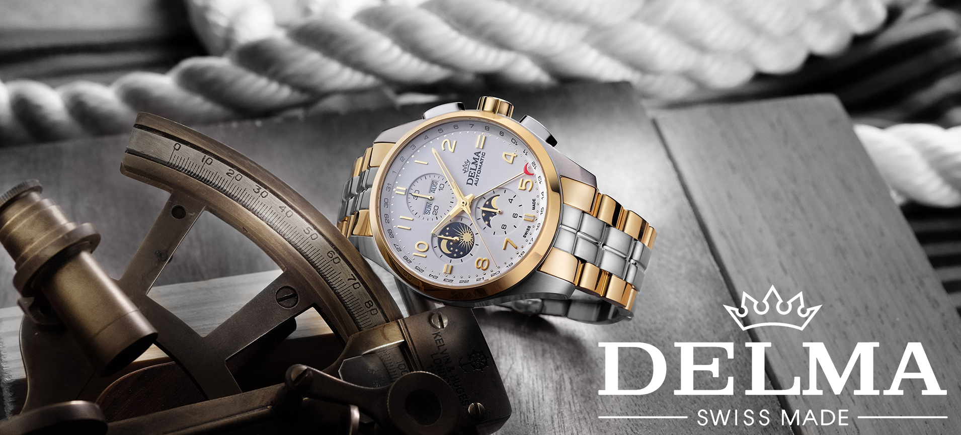 Таинственный океан, старинные города, воздухоплавание — мастера швейцарской марки Delma черпают вдохновение из изобильных и неиссякаемых источников. Утонченный, эффектный дизайн, исключительная точность и надежность, разумная стоимость и искусные маркетинговые стратегии позволили Delma утвердиться в числе ведущих компаний верхнего ценового сегмента. Есть и сфера, в которой лидерство бренда неоспоримо — это часы для дайверов, выдерживающие давление в сотни атмосфер.