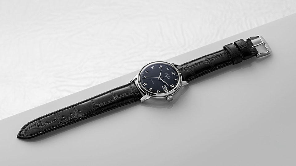 Классический дизайн в ретро-стиле 1930-х с арабскими цифрами и окошком даты на три часа. Коллекции построена на механике с автоподзаводом. У часов и кожаный ремешок или стальной браслет на выбор.