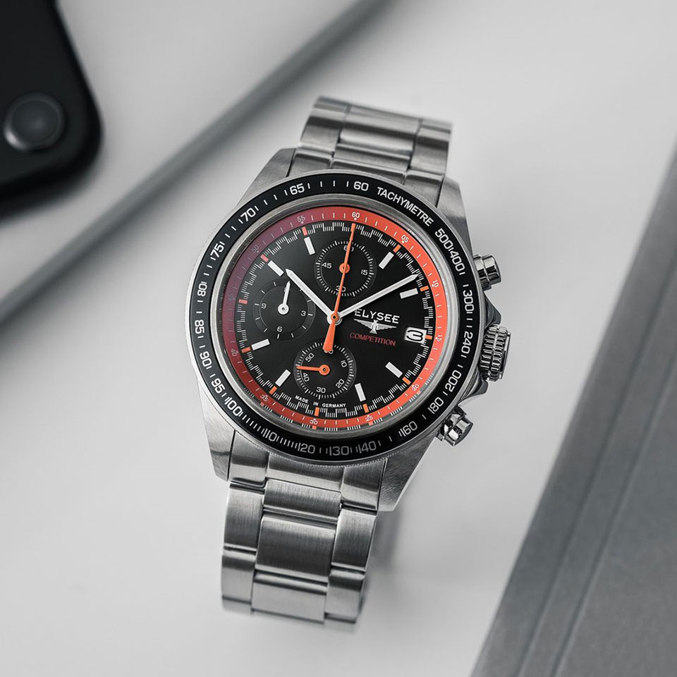 Все модели бренда делятся на две основные группы: механика с автоподзаводом и хронографы с кварцевыми и механическими калибрами. ELYSEE следуют своим стандартам изготовления часов: