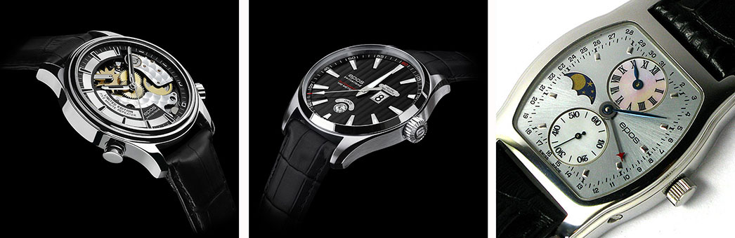 Главным принципом Epos остается истинно швейцарское качество часов при их ценовой доступности. Базовые механизмы закупаются у лучших поставщиков (ЕТА и ее подразделения, Sellita) и затем дорабатываются и искусно декорируются, порой вручную. «Коньком» бренда являются такие элементы, как большая дата, «прыгающий» час, 24-часовой формат индикации. Стекла неизменно сапфировые, почти всегда имеется окно из такого стекла в задней крышке. Основной материал корпуса – сталь, часто применяется позолота. Мастера компании охотно скелетонизируют часы, что создает дополнительный эстетический эффект. В брендбуке Epos и мужские, и женские модели, с более простыми и более сложными комплектациями, словом – на любой вкус.