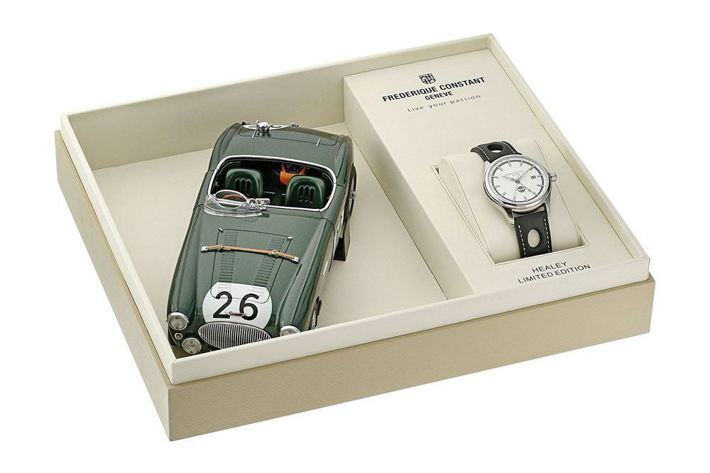 Vintage Rally Healey Automatic (арт. FC-303WGH5B6). Калибр FC-303 Heart Beat с автоподзаводом, запас хода 38 часов. Три стрелки, дата. Корпус из стали, диаметр 40 мм, водонепроницаемость 50 м. Сапфировое стекло. Задняя крышка с гравированным изображением автомобиля Austin Healey. Серебристый циферблат, люминесцентные стрелки и метки. Черный кожаный ремешок. Тираж 2888 экз.