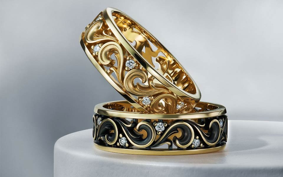 Особая черта всех изделий «Владимир Пичугов» — орнаменты. Практически в каждом кольце можно увидеть след греческой, скандинавской или восточной тематики. Бренд не искажает классические узоры, а воссоздаёт их во всех деталях. Благодаря такому подходу у украшений Пичугова есть чёткая структура и пропорции, которые привлекают внимание без лишней броскости.