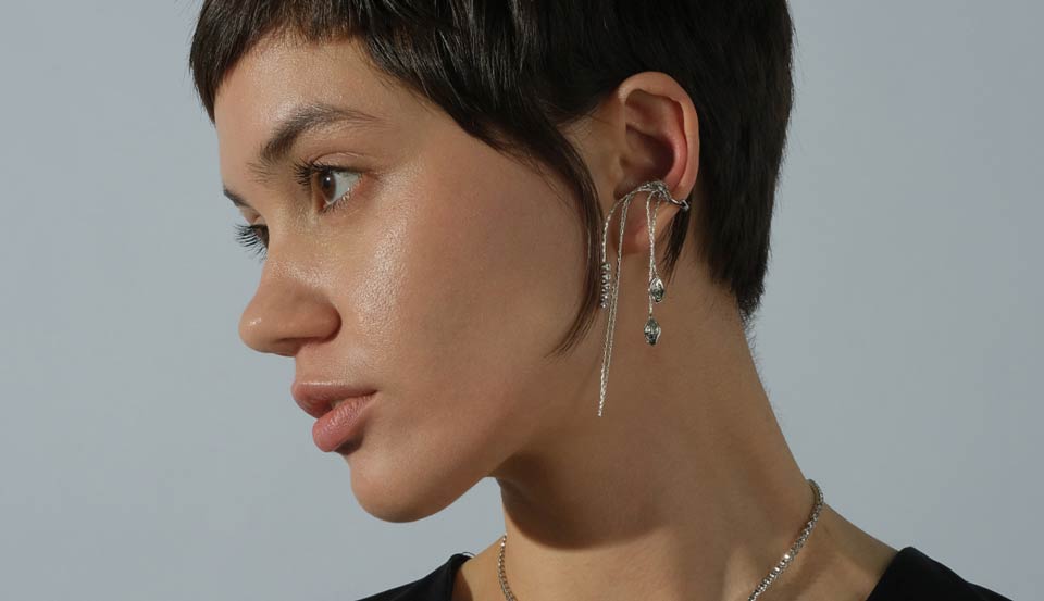 Линейка украшений сезона осень-зима 2021, выполненных из родированного латунного сплава. Главные акценты — вставки фианитов и большое количество цепей, создающих ощущение праздника.