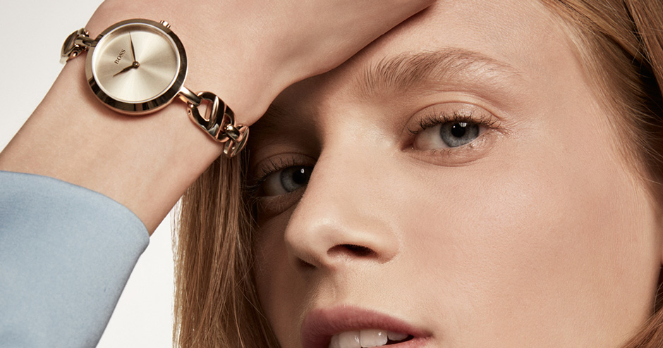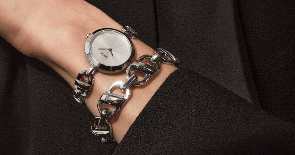 SIGNATURE. Визитная карточка каждой женщины – ее стиль. Новая коллекция BOSS Signature воплощает эту идею с идеальным балансом элегантности и блеска. Эти женственные часы с уникальными закрученными метками, витыми звеньями браслета, сверкающим кристаллами безелем, мгновенно придадут сияния любому образу.