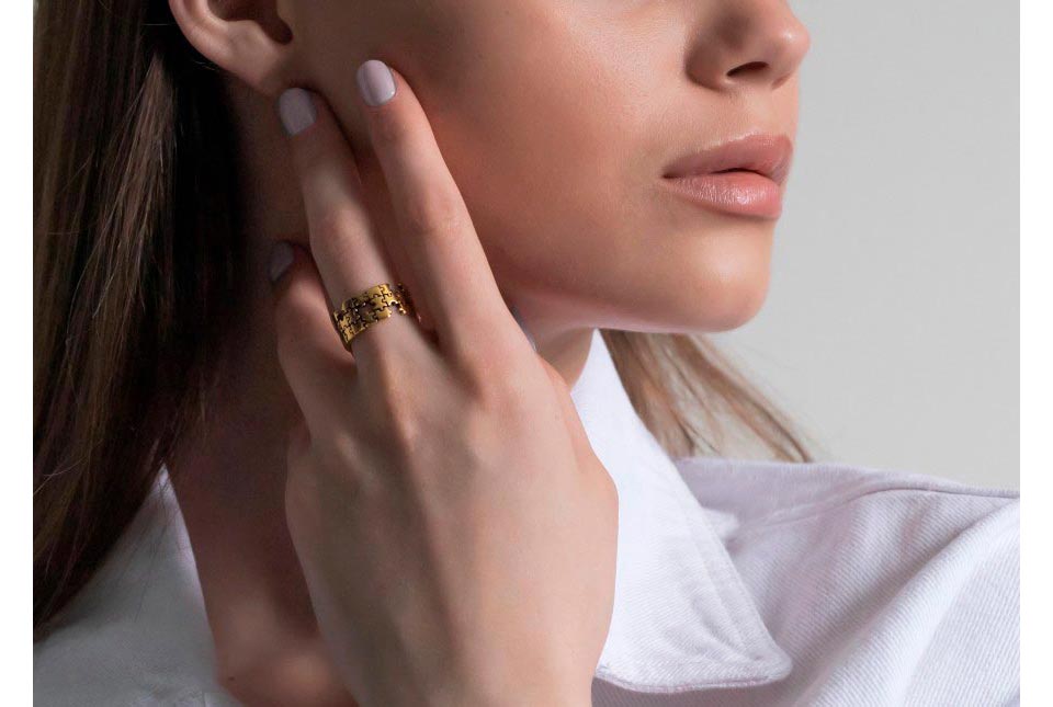 Оригинальное позолоченное кольцо ''Puzzle'' из серебра 925 пробы.