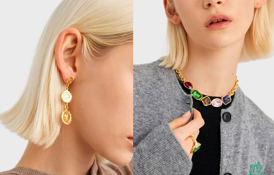 Украшения Sonia Rykiel – это воплощение богемного парижского стиля, элегантного и в то же время небрежного. Крупные элементы отлично сочетаются с нежной ручной работой. В них много отсылок разным стилям и эпохам. Например, колье из латуни и ярких хлопковых нитей из коллекции Colorblock напоминают об эстетике 60-х и ярком стиле хиппи. А восхитительные кольца из коллекции Superchromatic с красными и зелёными кристаллами напоминают винтажный стиль 20-х-30-х гг. ХХ в. В любом случае украшения Sonia Rykiel сделают ваш образ запоминающимся и неповторимым.