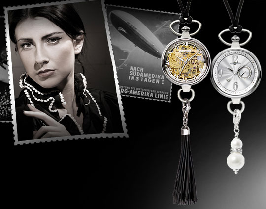Коллекция Princess of the Sky воссоздает гламурный шик золотых 20-х гг. прошлого века, когда разнообразные аксессуары было принято носить, как говорится, «не на своем месте». Так, с легкой руки одной из модниц, наручные часы перекочевали с запястья на шею и превратились в изящный кулон! Купить немецкие часы вы всегда можете в наших розничных магазинах или он-лайн.