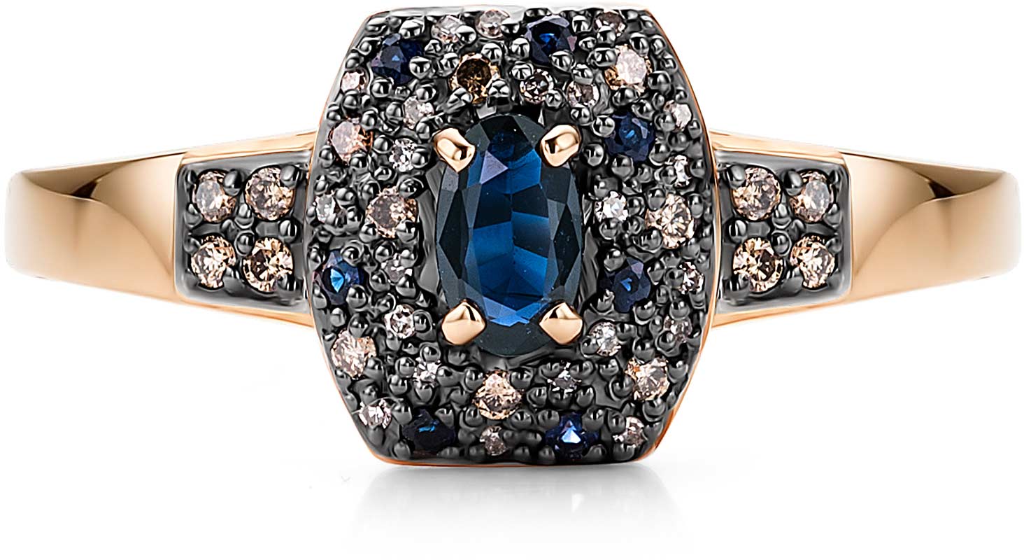 Фото «Золотое кольцо Алькор 15752-170 с сапфиром, коньячными бриллиантами, бриллиантами»