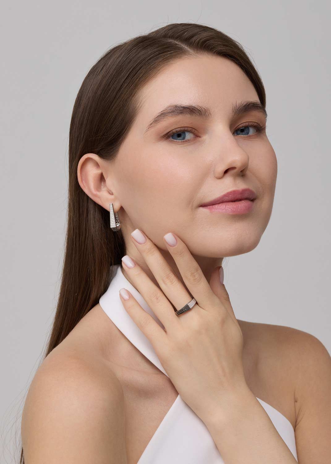 Фото «Кольцо из белого золота Алькор 15840-213 с черными бриллиантами, бриллиантами»