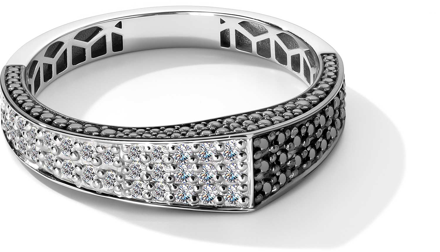 Кольцо из белого золота Алькор 15840-213 с черными бриллиантами, бриллиантами