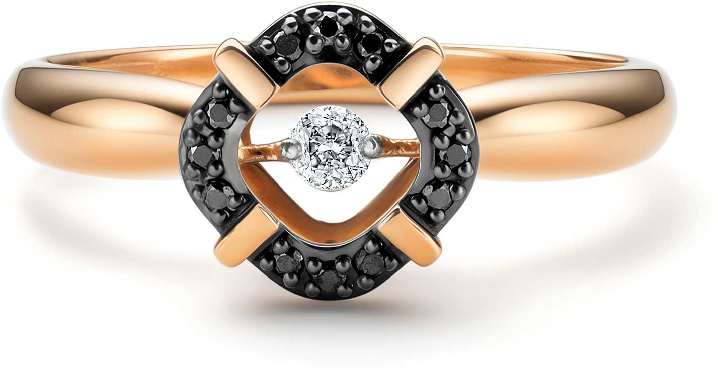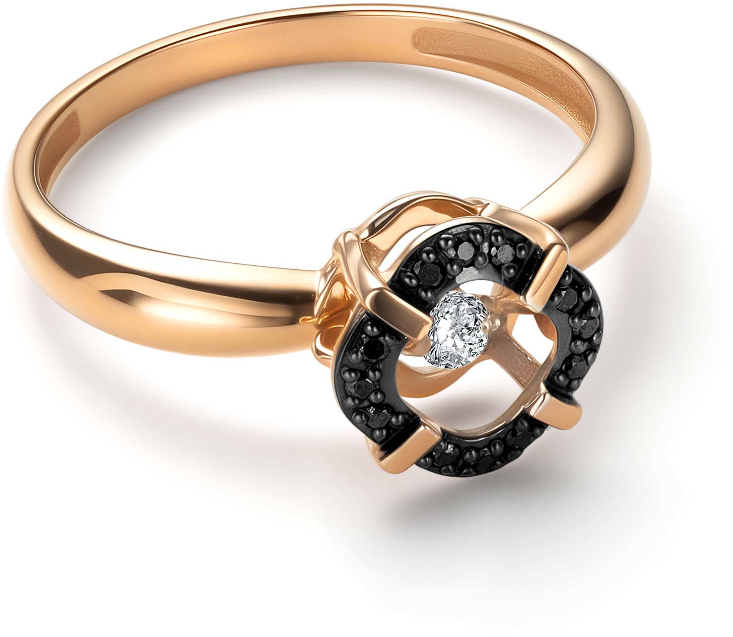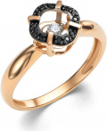 Золотое кольцо Алькор 16077-113 с бриллиантом, черными бриллиантами