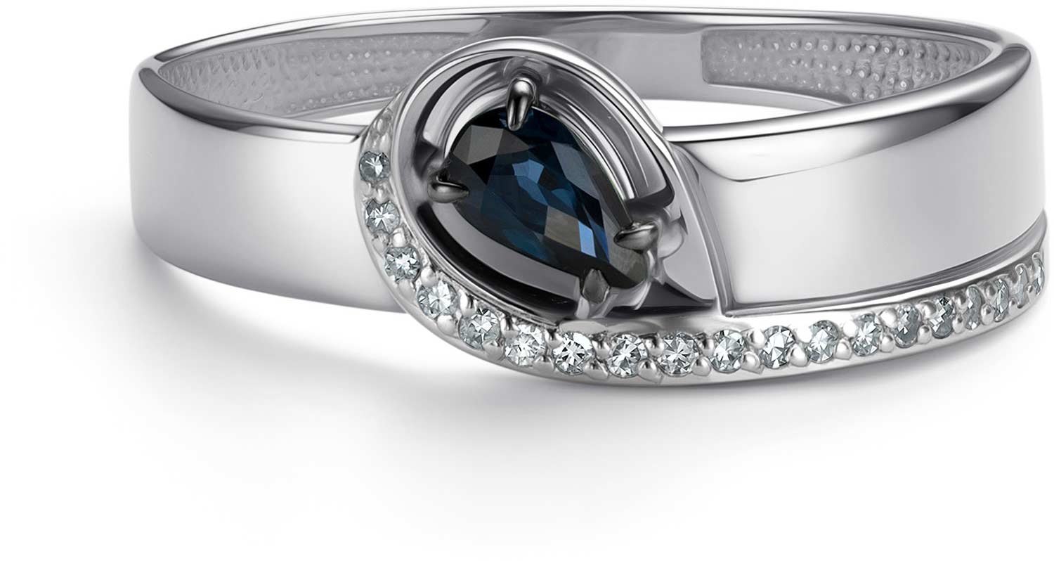 Кольцо из белого золота Алькор 16438-202 с сапфиром, бриллиантами