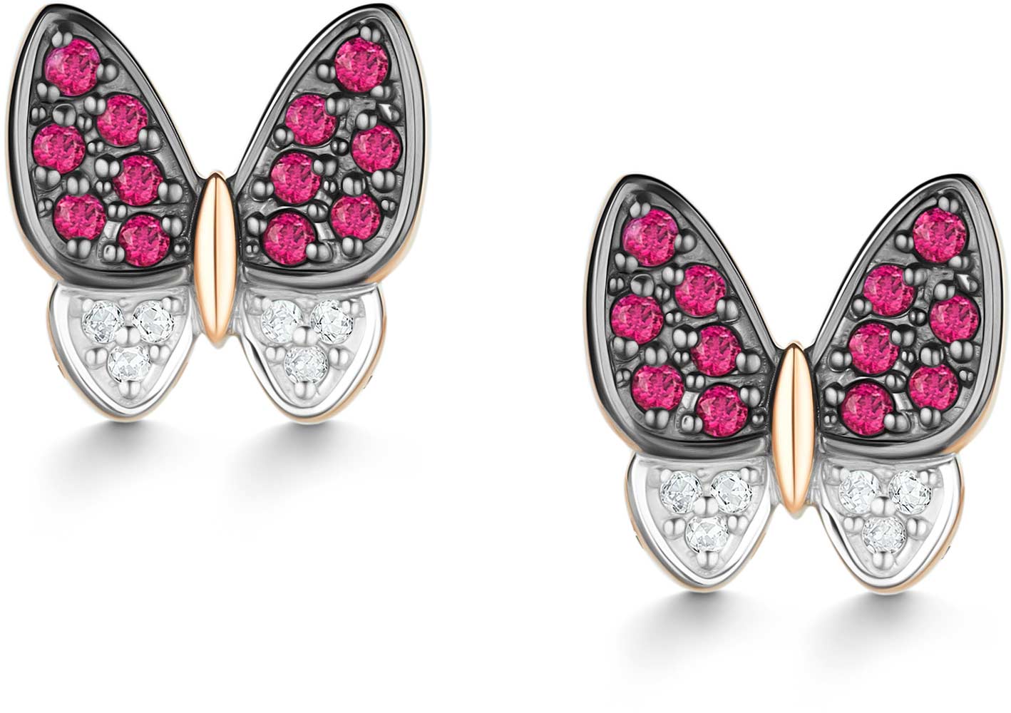 Фото «Золотые серьги пусеты-гвоздики ''Бабочки'' Алькор 25986-103 с рубинами, бриллиантами»