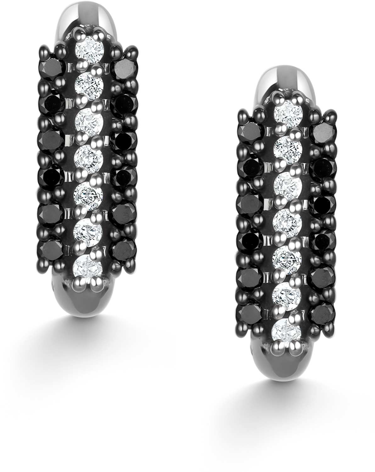 Серьги из белого золота Алькор 26006-213 с черными бриллиантами, бриллиантами