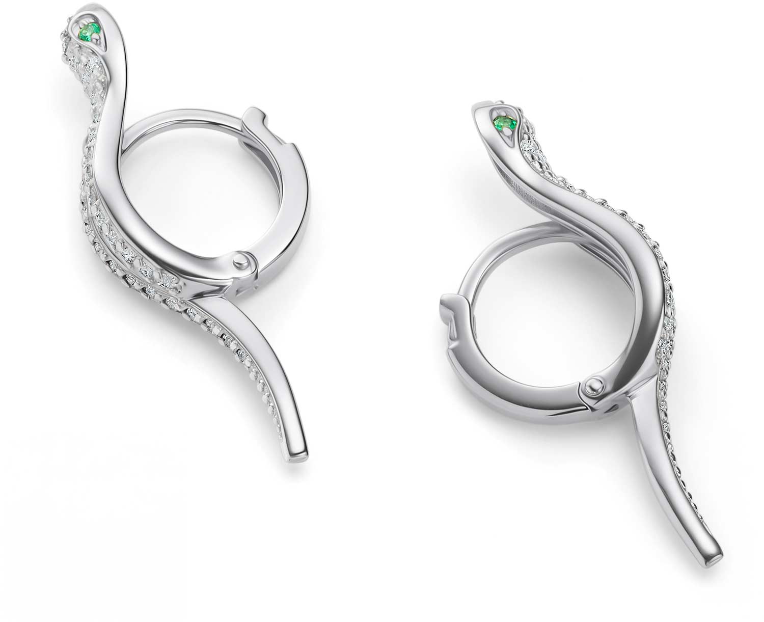 Фото «Серьги хаггисы из белого золота ''Змея'' Алькор 26009-201 с изумрудами, бриллиантами»