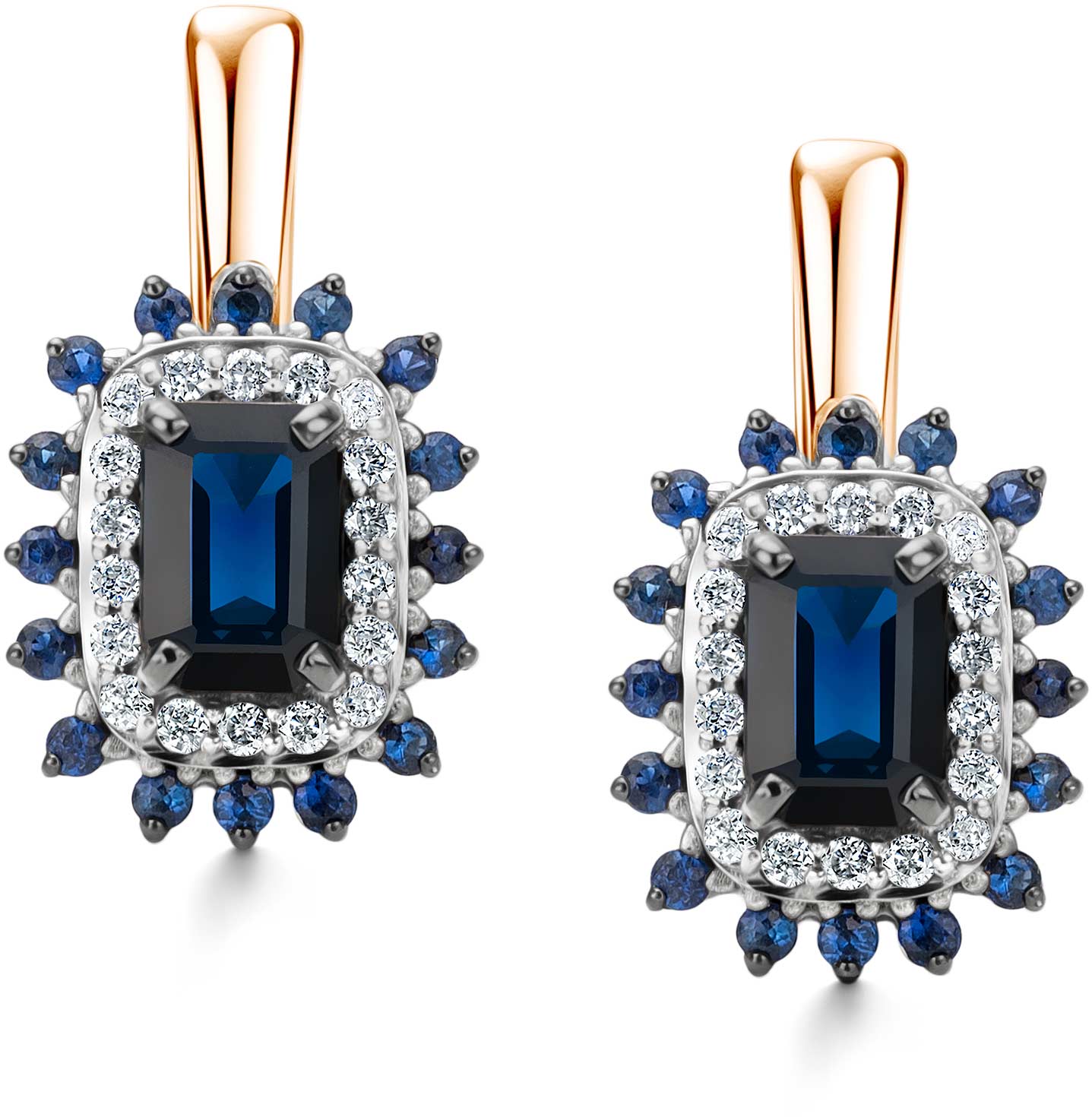 Золотые серьги Алькор 26130-102 c бриллиантом, сапфиром