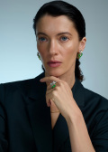 - сапфир зеленый - 18шт. - 0,127К, бриллиант в 57 граней - 4шт. - 0,029К, чистота камня 3/5А (цвет, качество), бриллиант в 57 граней - 24шт. - 0,114К, чистота камня 3/5А (цвет, качество)