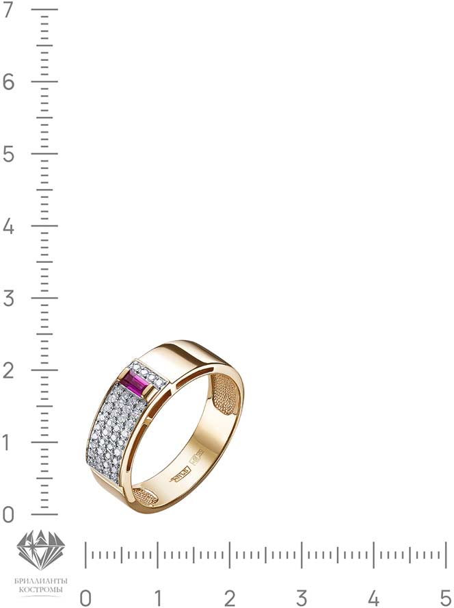 Золотое кольцо БРИЛЛИАНТЫ КОСТРОМЫ 01-3961/3 с рубином, бриллиантами