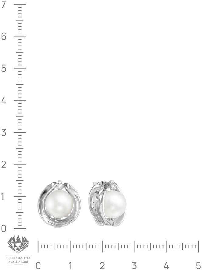 Фото «Серьги из белого золота БРИЛЛИАНТЫ КОСТРОМЫ 02-2573. с жемчугом, бриллиантами»