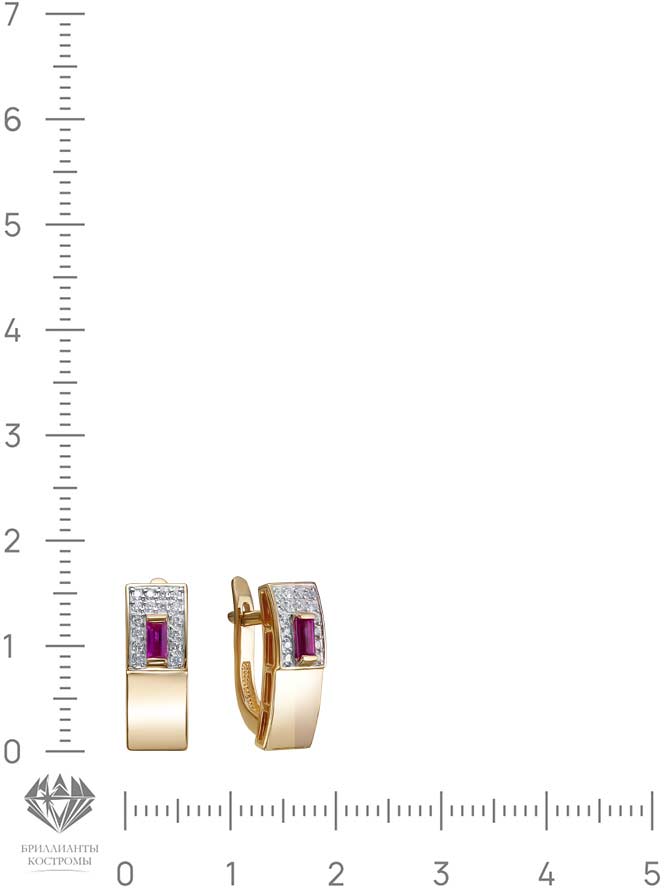 Фото «Золотые серьги БРИЛЛИАНТЫ КОСТРОМЫ 02-3961/3 с рубинами, бриллиантами»