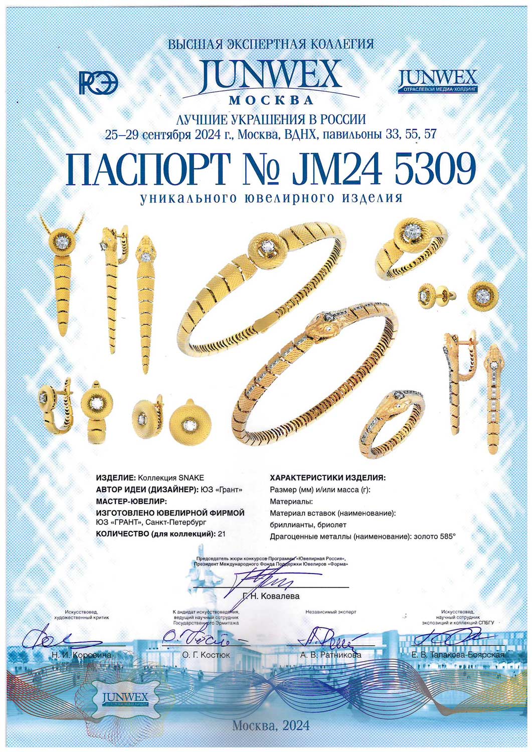 Фото «Золотые серьги кольца конго ''Змеи'' Grant 0601680 с бриллиантами»