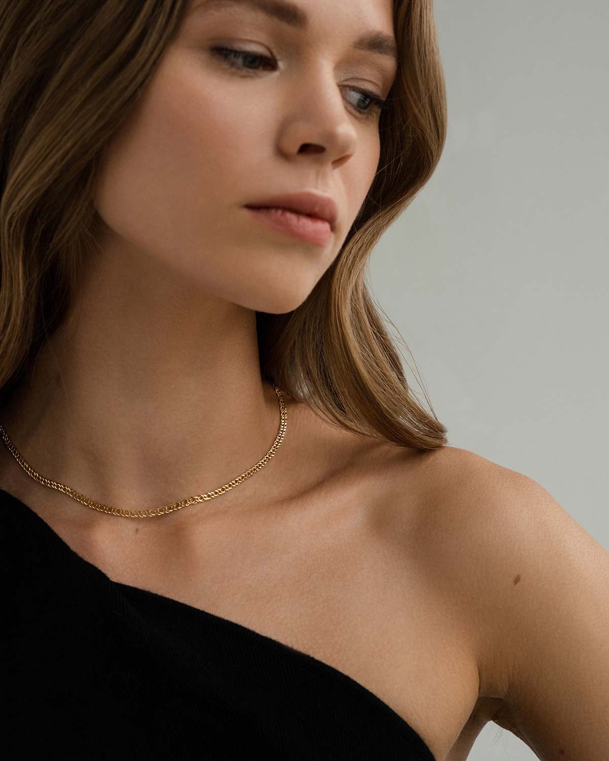 Фото «Золотая цепочка на шею Krastsvetmet NC-11-076-0-50 с плетением двойной ромб»