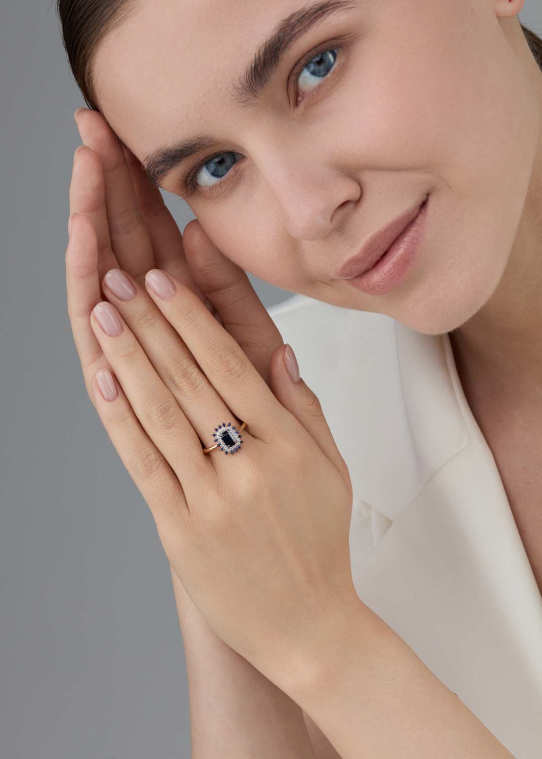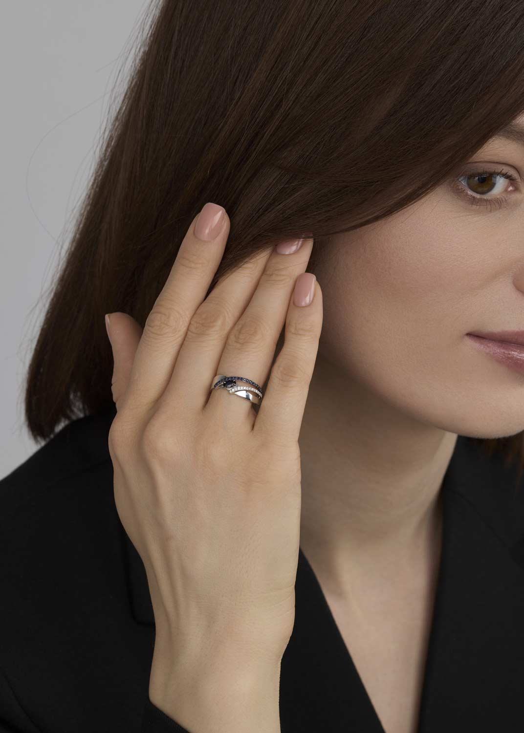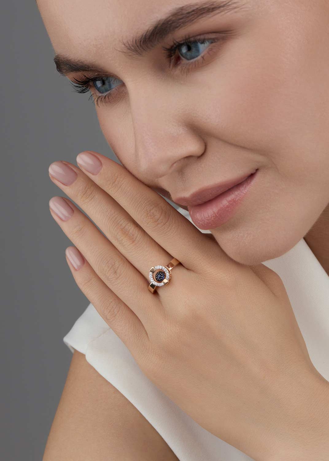 - красное золото, бриллиант, сапфир, коньячный бриллиант