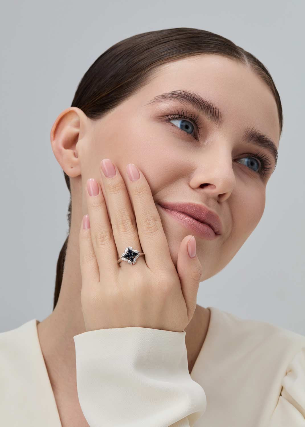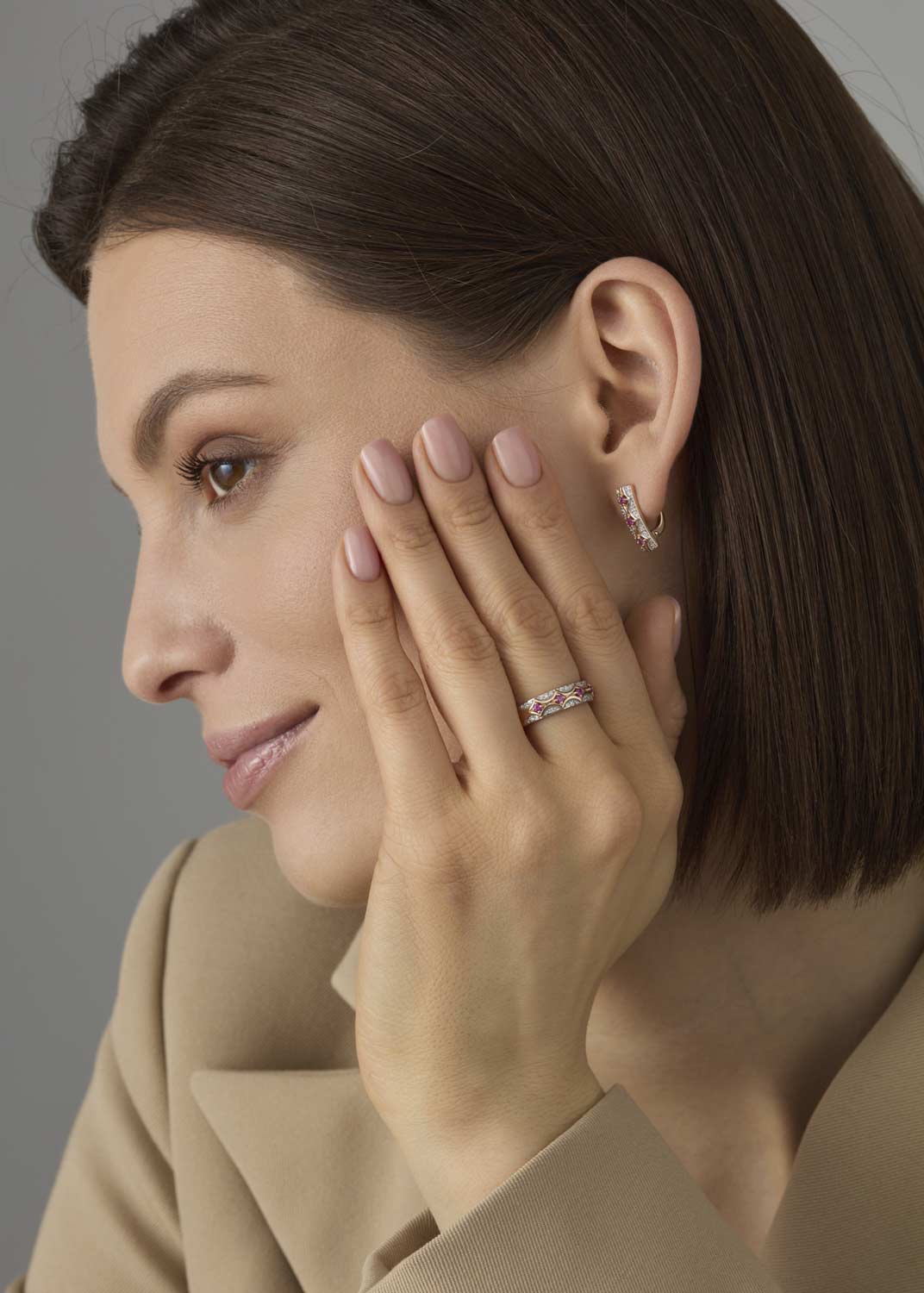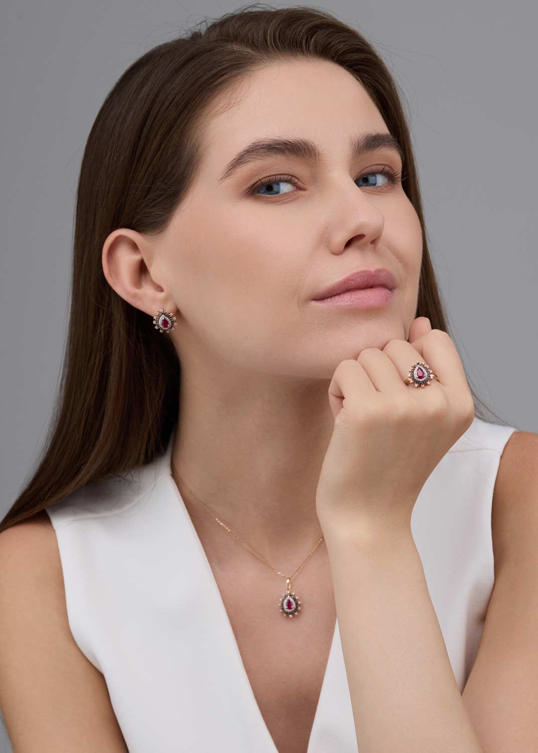 - красное золото, бриллиант, сапфир, коньячный бриллиант