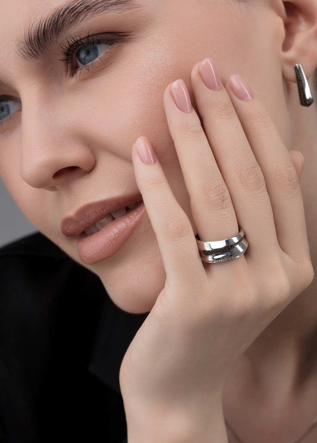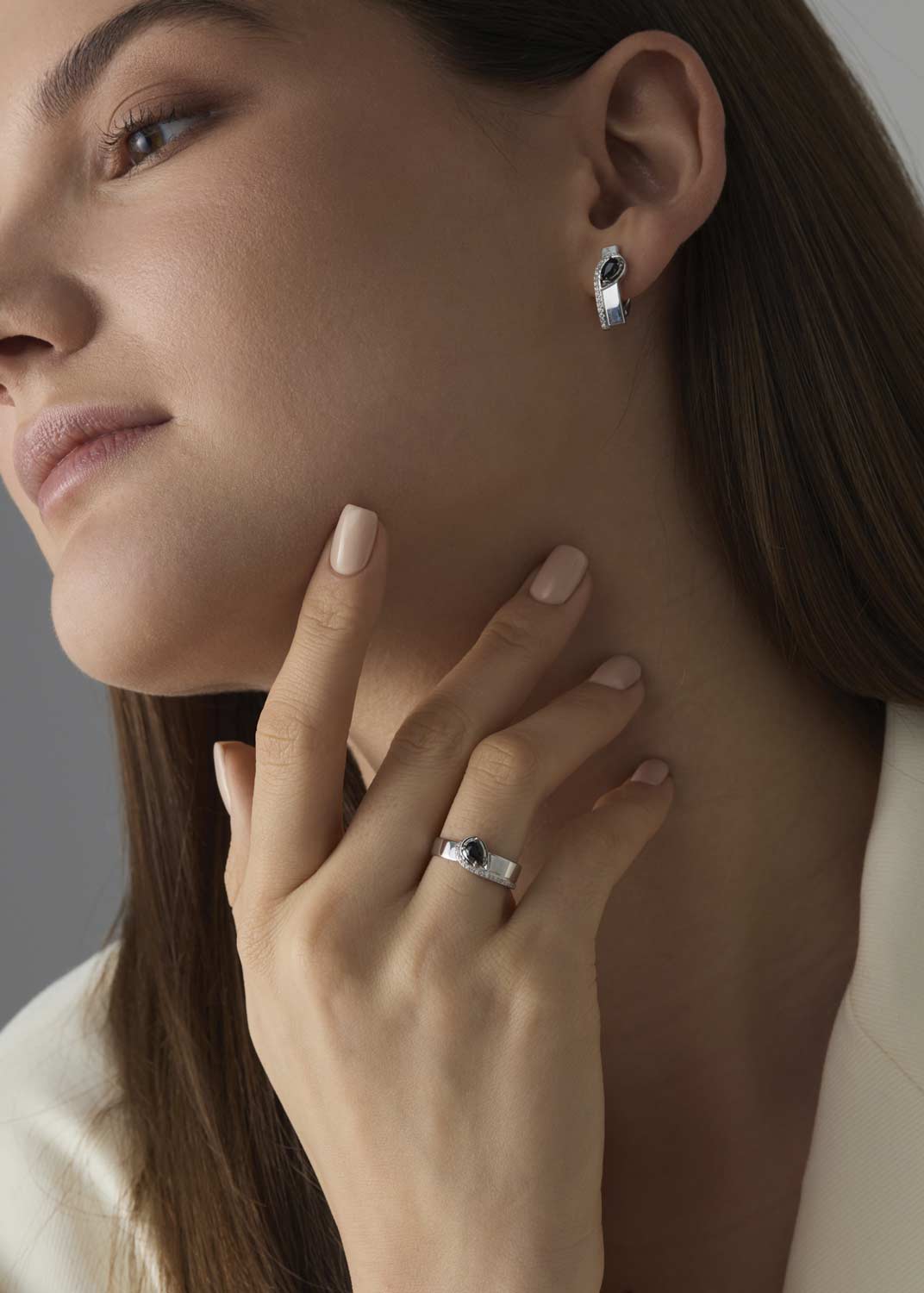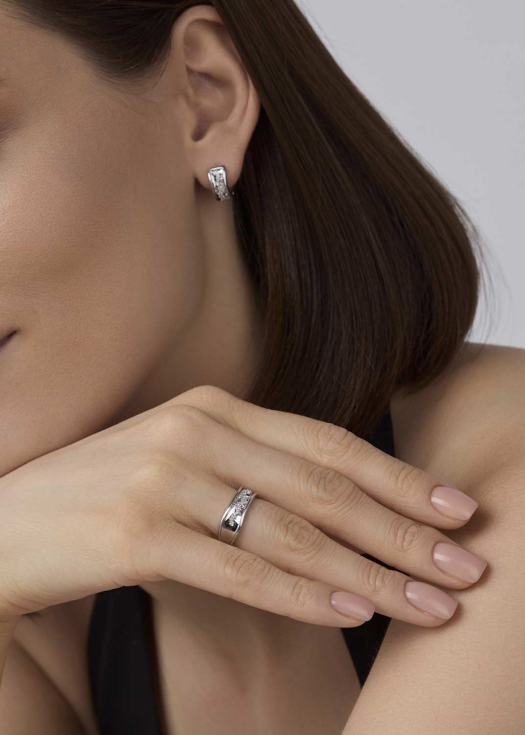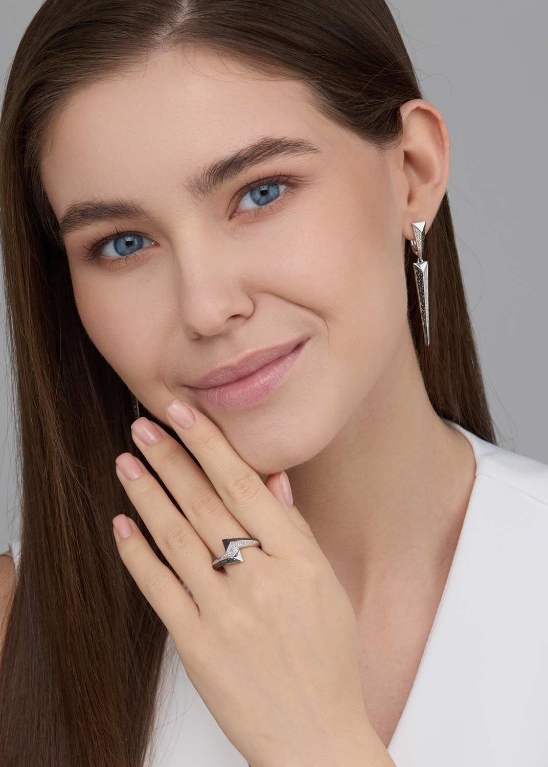 - белое золото, цветные бриллианты, бриллиант, вес: для размера 17 - 2,05г.