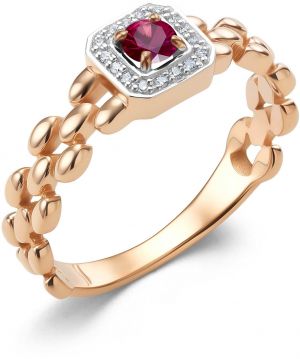 - красное золото, бриллиант, рубин, вес: для размера 18 - 2,86г.