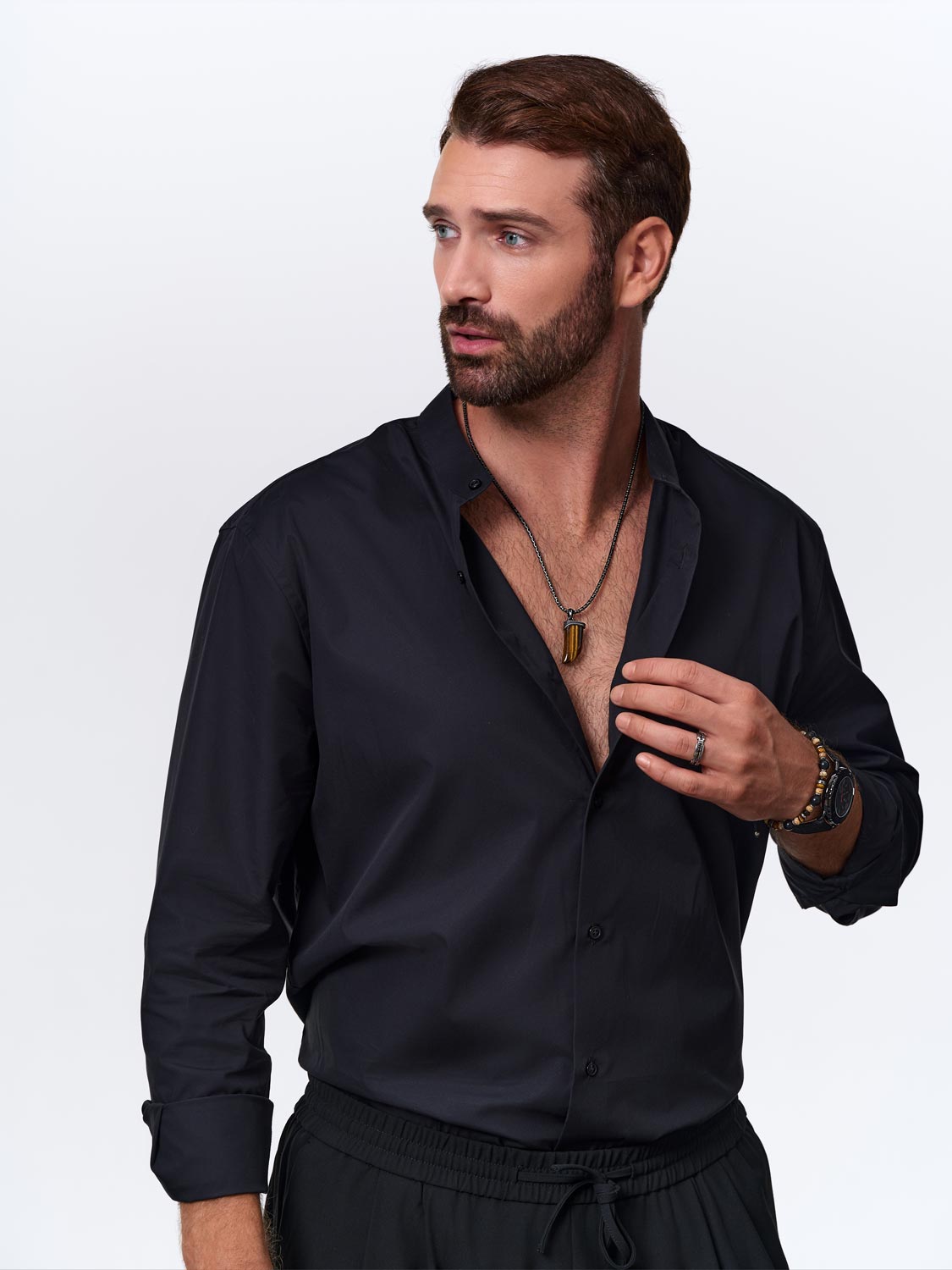 Фото «Мужская стальная подвеска на цепочке ''Клык'' TecArt L507102N с тигровым глазом»