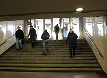 Поднимайтесь по ступенькам на улицу. Держитесь левой стороны.