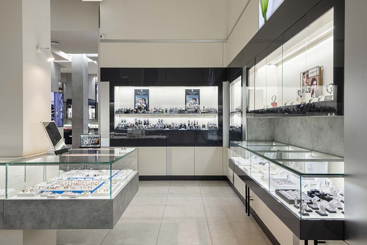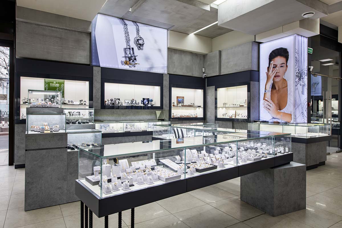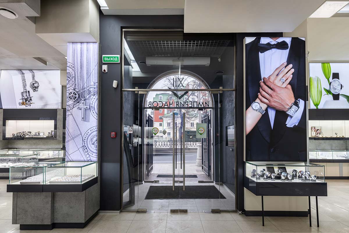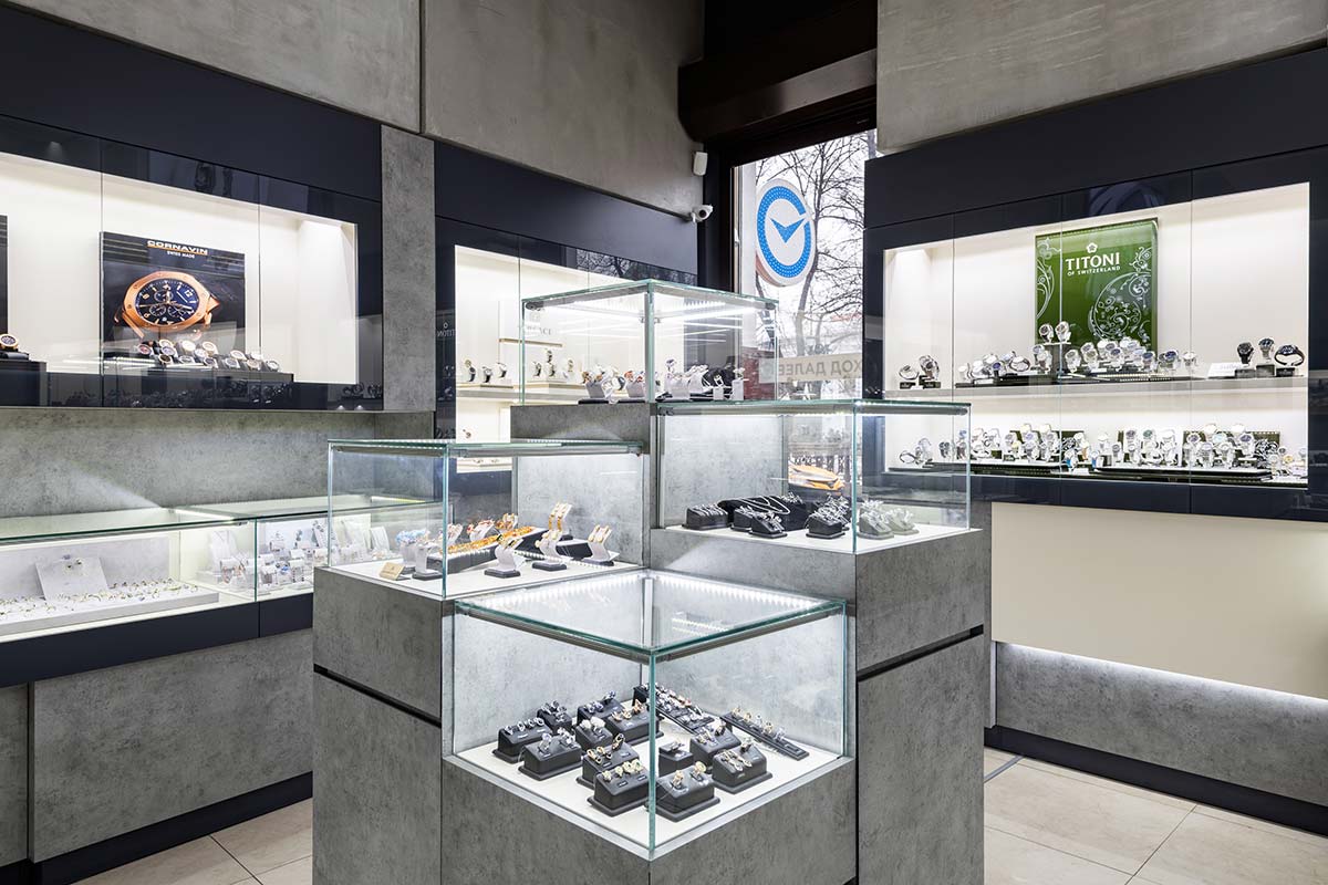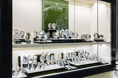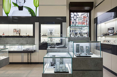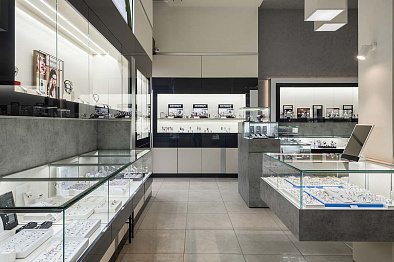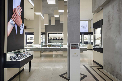 В салоне площадью 218 м2 представлены аксессуары, ювелирные украшения из золота от 500 до 906780 Р (2688 моделей), элитные швейцарские и fashion-бренды часов от 2320 до 3696200 Р (1714 моделей).