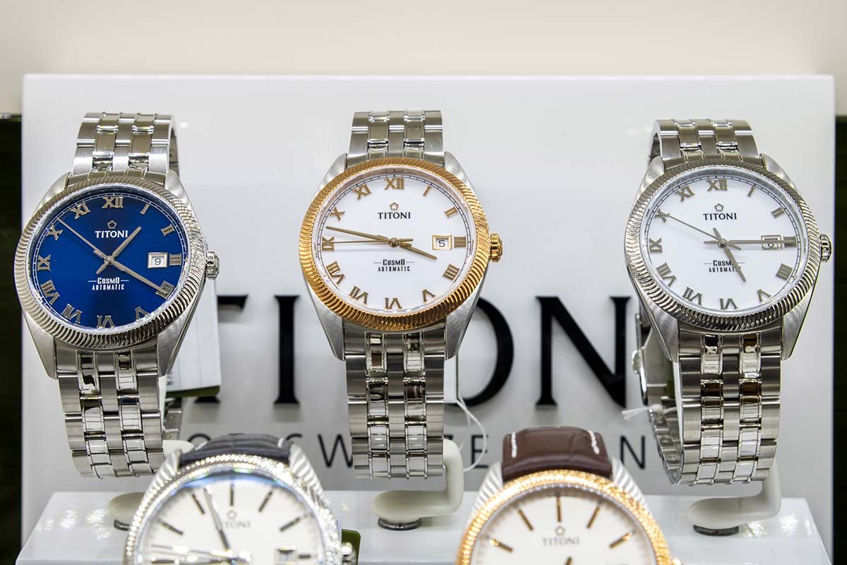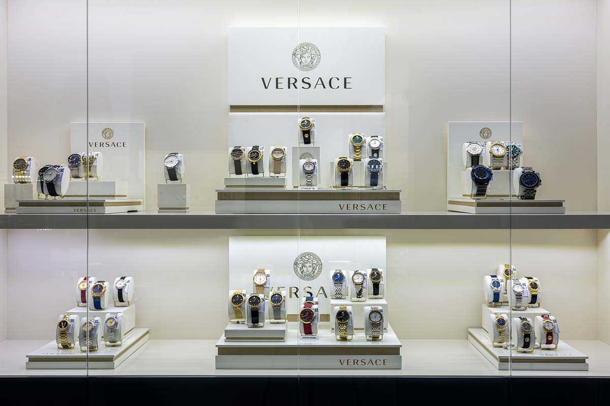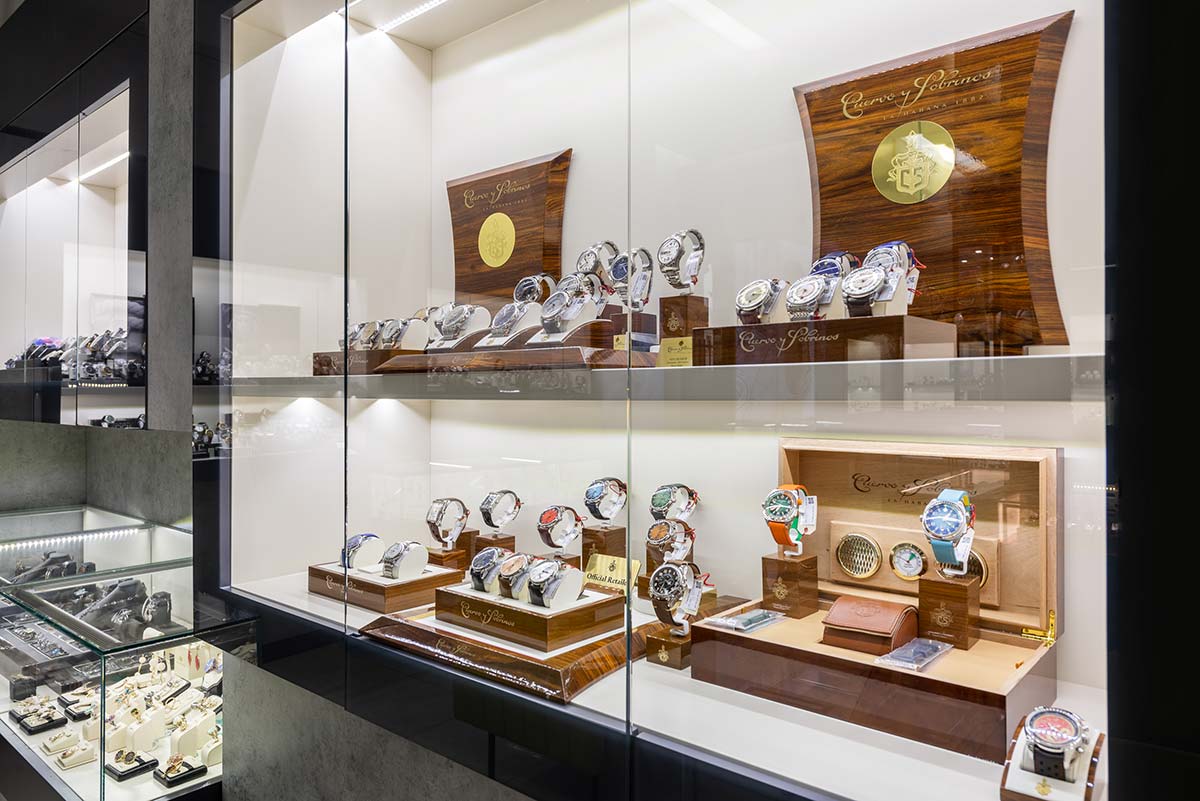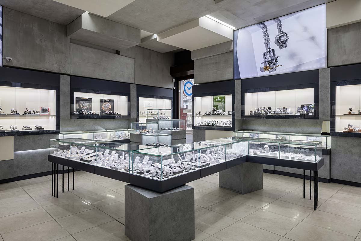 В салоне площадью 218 м2 представлены аксессуары, ювелирные украшения из золота от 500 до 906780 Р (2688 моделей), элитные швейцарские и fashion-бренды часов от 2320 до 3696200 Р (1714 моделей).