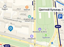 На цветном бульваре. Адрес для навигации: Цветной бульвар, 2. Парковка платная.