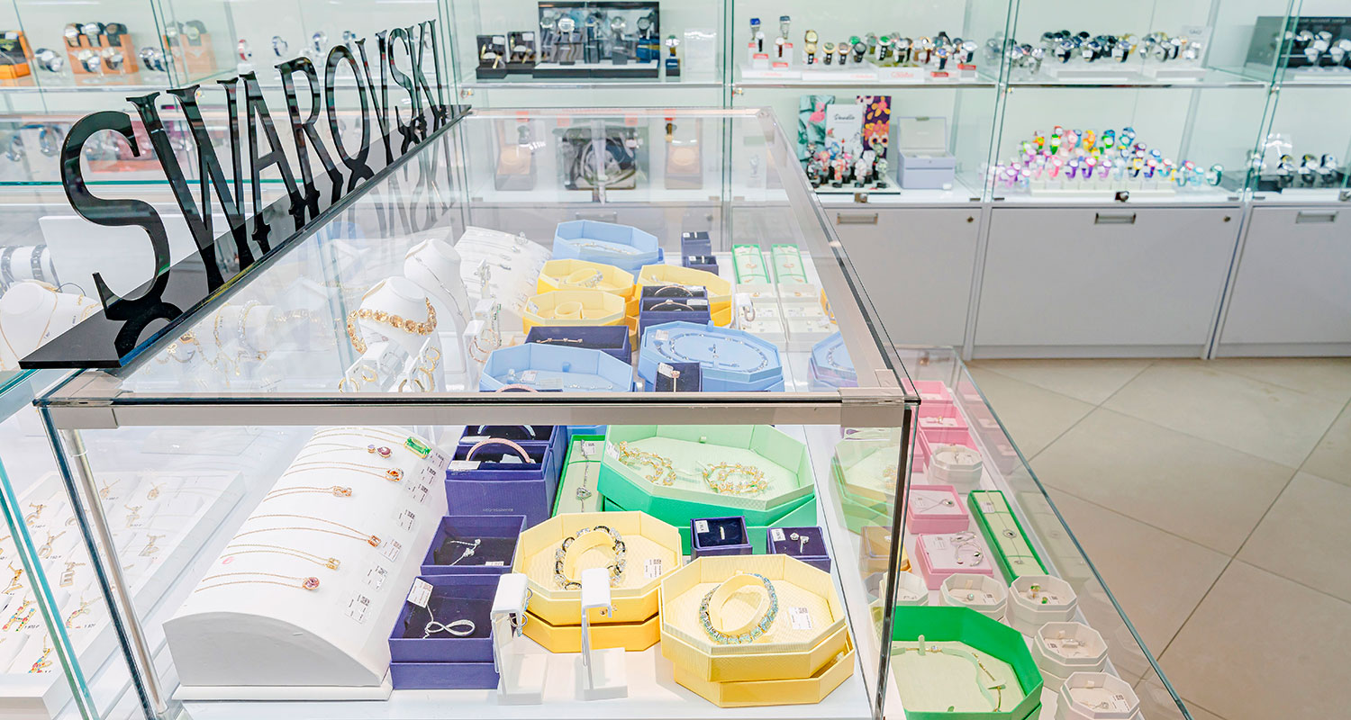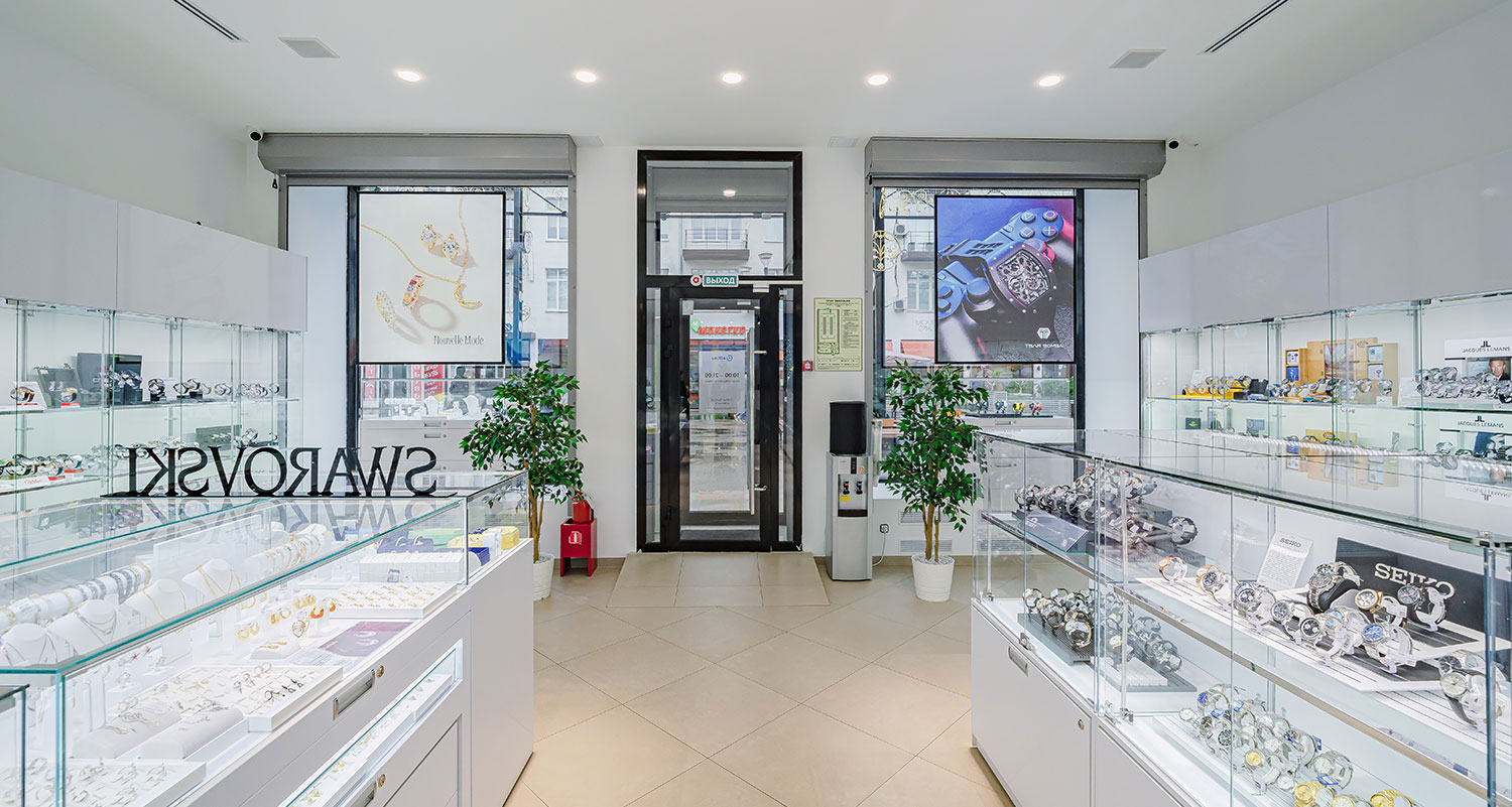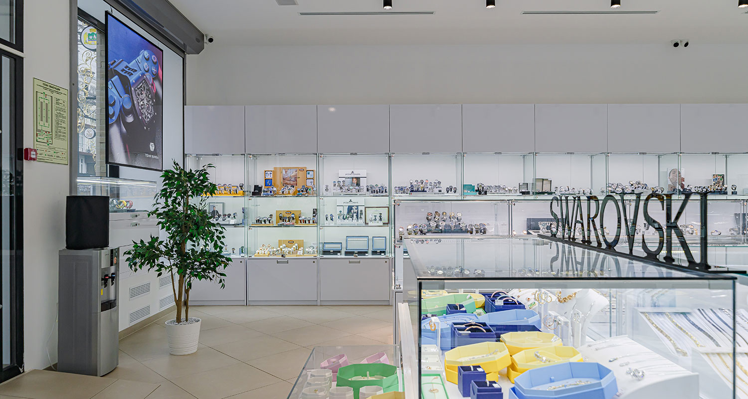 Магазин расположен в центральной части города, его площадь насчитывает более 100 м2. В салоне представлены ювелирные украшения от 200 до 84250 Р (2290 моделей), аксессуары, часы известных швейцарских и fashion-брендов от 1000 до 269900 Р (3577 моделей).