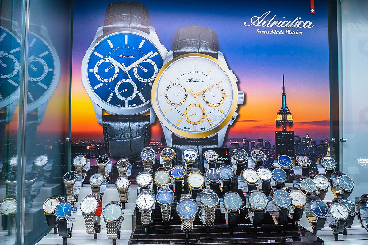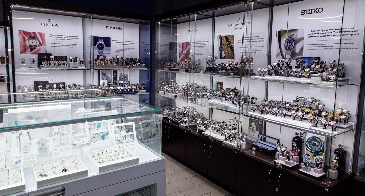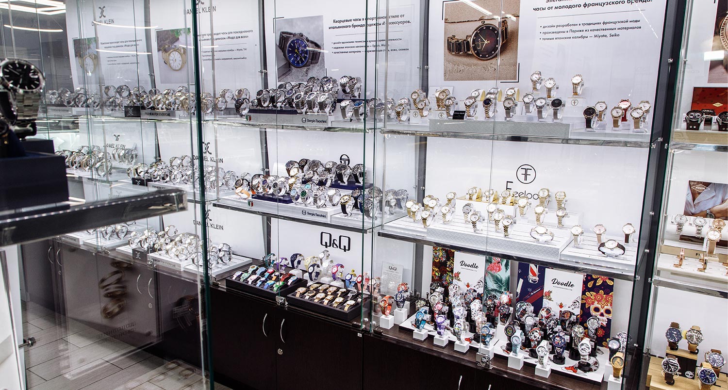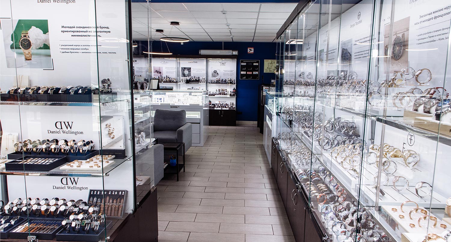 Магазин расположен в центральной части города, его площадь насчитывает более 100 м2. В салоне представлены аксессуары, часы известных швейцарских и fashion-брендов от 1000 до 295900 Р (3473 моделей) и ювелирные украшения от 200 до 40900 Р (1888 моделей).