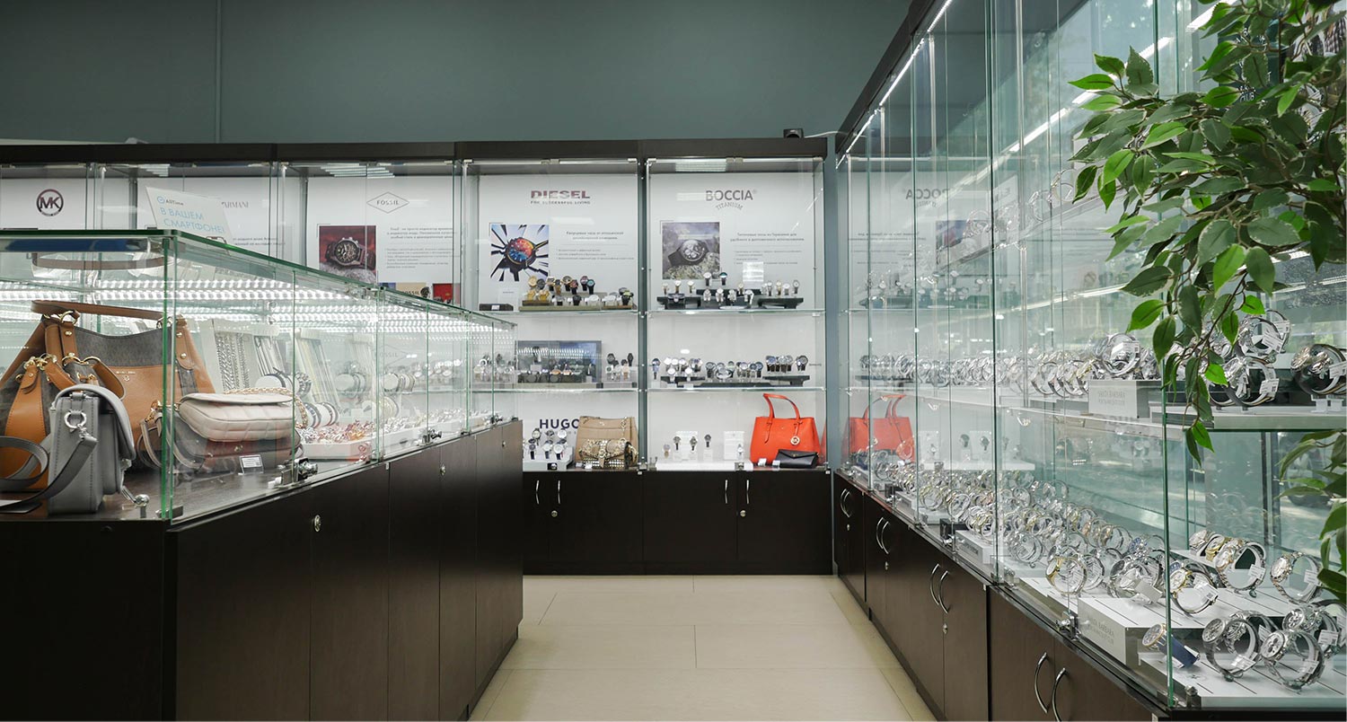 Магазин расположен в центральной части города, его площадь насчитывает более 100 м2. В салоне представлены аксессуары, часы известных швейцарских и fashion-брендов от 1000 до 195000 Р (3048 моделей) и ювелирные украшения от 200 до 92860 Р (2262 моделей).