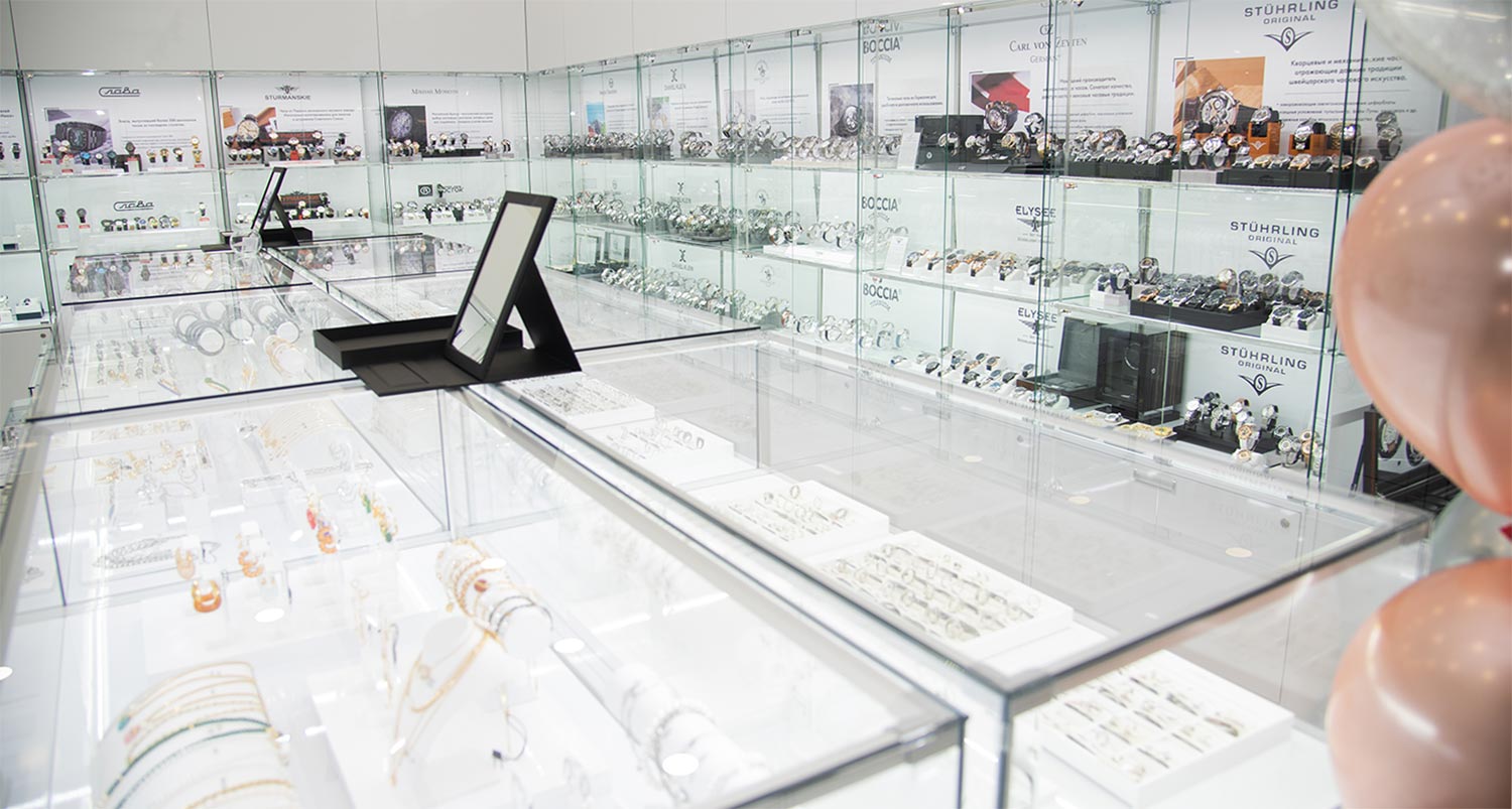 Магазин площадью более 100 м2 расположен в центральной части города. В салоне представлены аксессуары, часы известных швейцарских и fashion-брендов от 1000 до 195000 Р (3181 моделей) и ювелирные украшения от 200 до 134800 Р (1508 моделей).