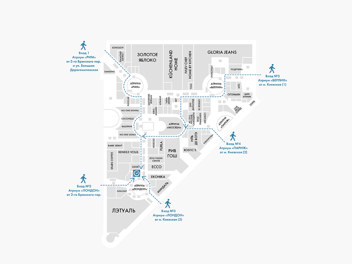 г. Москва, пл. Киевского Вокзала, д. 2, ТЦ Европейский, 1 этаж