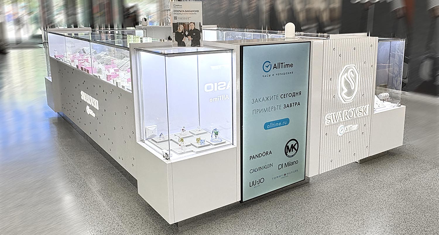Островной магазин часов и украшений Swarovski AllTime в ТЦ Афи Галерея, г. Москва