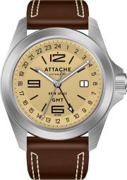 Российские механические наручные часы ATTACHE OPEN-SPACE-GMT-BSILVER
