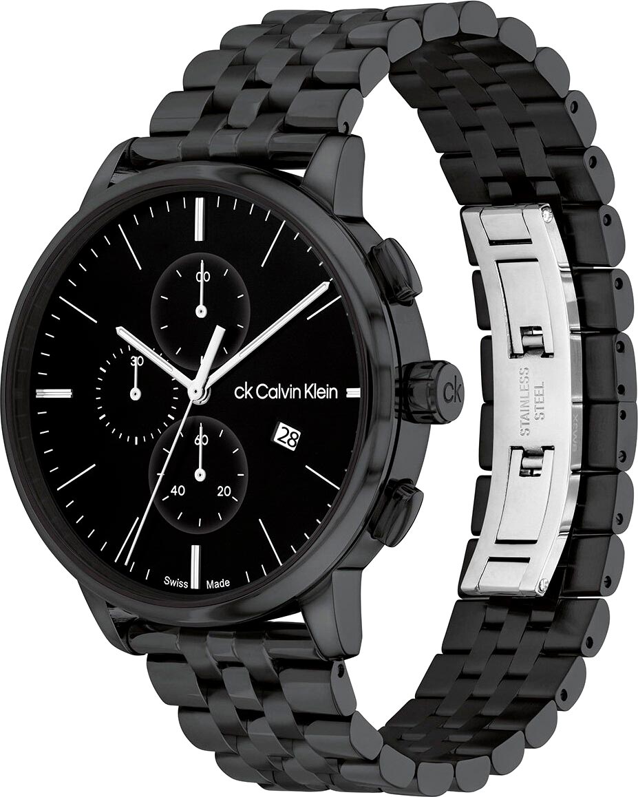 Эти сдержанные часы непременно привлекут ваше внимание, а дополнительные функции подарят дополнительный контроль над временем. Наручные кварцевые часы-хронограф с секундомером Swiss Chrono. Круглый стальной корпус. Матовый циферблат с накладными метками в виде штрихов. Окошко даты в положении 4 часа. Заводная головка украшена логотипом ''ck''. Стальной браслет с раскладывающейся застежкой.