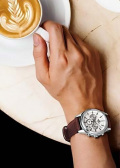 • Рифленая заводная головка украшена камнем в форме кабошона.
